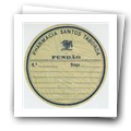 Rótulo redondo com inscrição "Pharmacia Santos Taborda - Fundão"