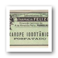 Rótulo de "Xarope Iodotânico - Fosfatado", dos Laboratórios da Farmácia Feliz, com a Direção Técnica de A. de Almeida Feliz.